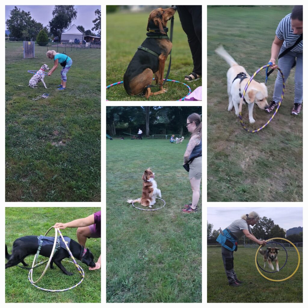 In diesem Jahr wurde das Trainingsangebot in einer recht großen Gruppe, aufgeteilt in drei kleinere im Parcours mit jeweils fünf Hund-Mensch-Teams durchgeführt. Nur so war es möglich allen Interessierten Einblicke in dieses Training zu ermöglichen. Mit Spaß und guter Laune konnten die Teilnehmer feststellen, dass wir sehr oft mit dem Körper agieren, auch wenn es gar nicht merken und im Gegenzug wie wertvoll es sein kann, dies gezielt und bewusst einzusetzen.