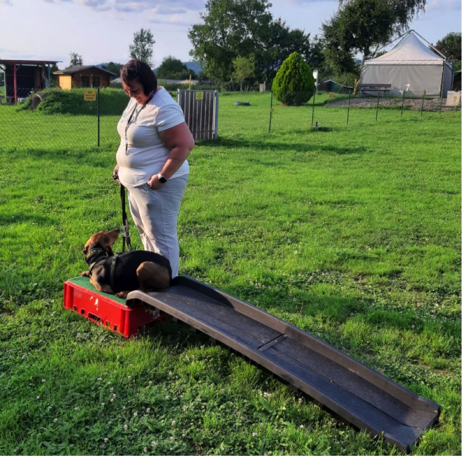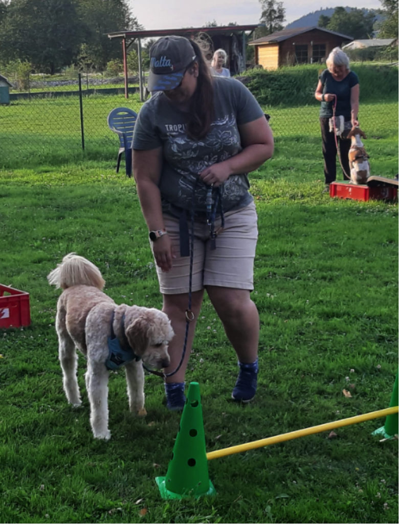 Eine Herausforderung für viele Hunde und ihre Menschen war das Tempo und die Achtsamkeit mit der die Parcours entdeckt werden konnten. Es sollte keinen Hund gezwungen werden, kein Einwirken über die Leine, kein „Muss“ und es sollte nicht mit Futter gelockt werden. Somit war nicht nur Koordination und Konzentration des Hundes gefordert, sondern auch die von seinem Menschen. Jede Übung war ein kleines Abenteuer, bei der die Teams kreativ werden konnten.