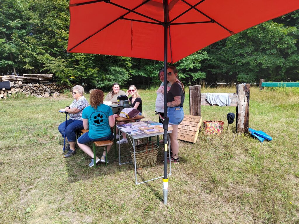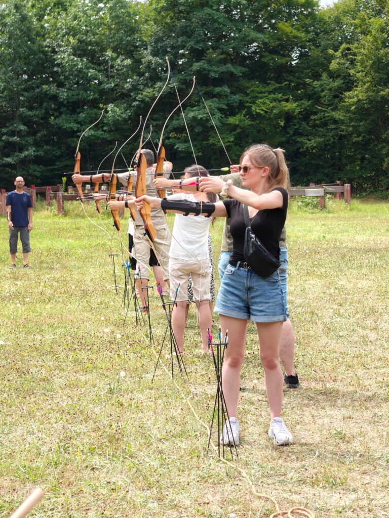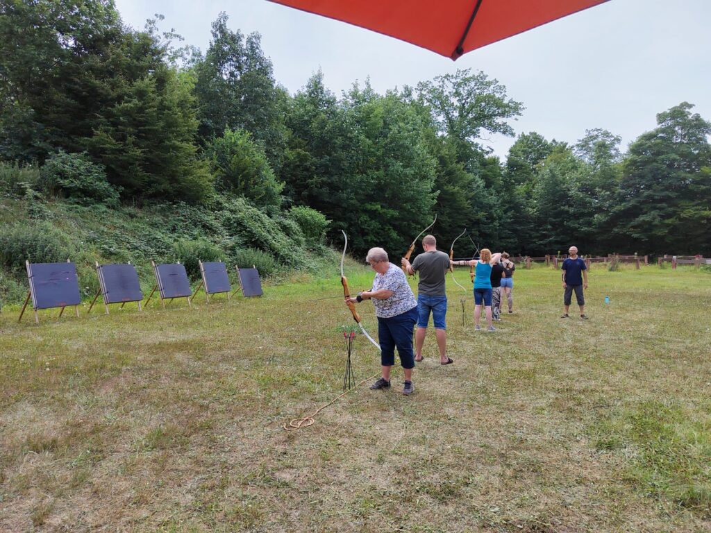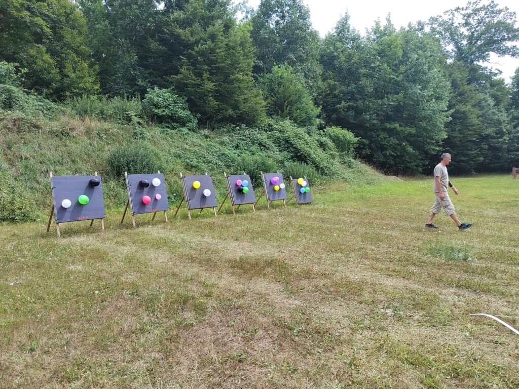 Dieses Jahr hatte Heide für uns eine Einführung ins intuitive Bogenschießen in Ichenheim organisiert. Das Wetter war super krass warm aber es gab genügend Trinkvorrat und Knabbermöglichkeiten, die unser Lehrer Andreas netterweise schon angeschleppt hatte.